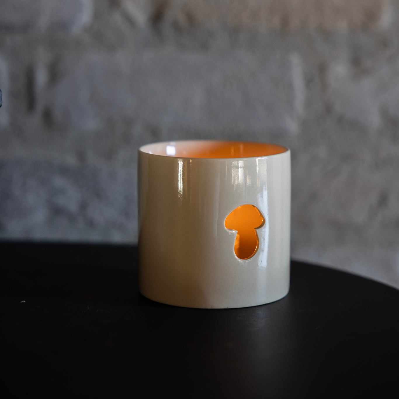 With its thin porcelain and beautiful pattern that lets the light in, this will become a new Easter favorite. Shines beautifully alone, or together with several in groups. Also available in a smaller size. Dimensions Ø8 H8 cm Color Warm White Pattern: Mushroom Item no. 10142