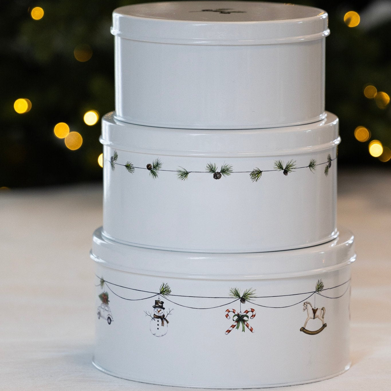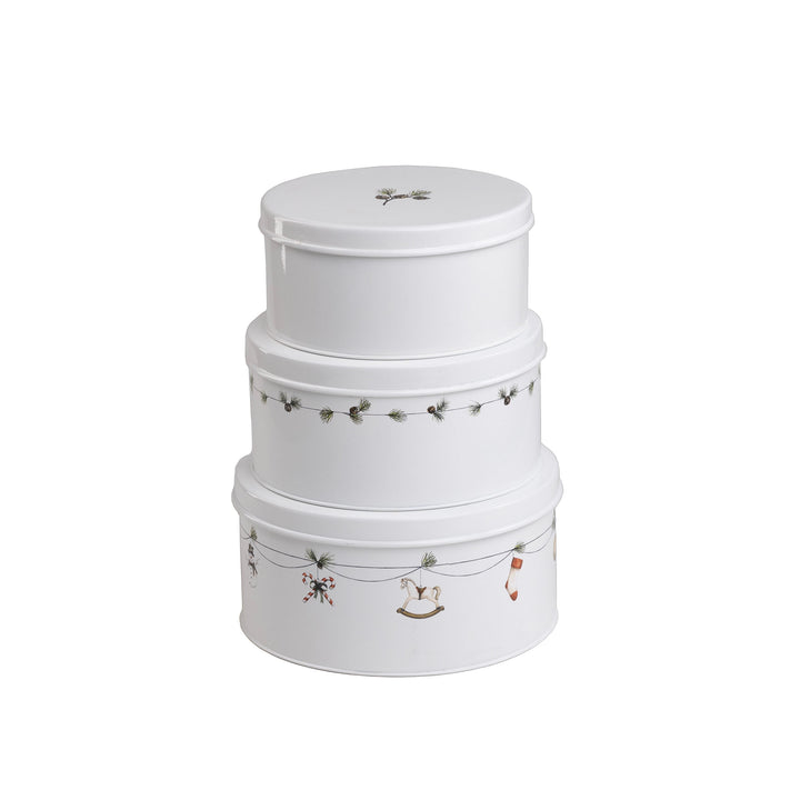 The set of metal cake boxes is part of sögne's Tradition collection. Nostalgic illustrations by the local artist Bente Lill Endresen, bring out the good and warm Christmas atmosphere we all want. Memories from childhood Christmas, and traditions we want to carry on. These are boxes that look great on the counter throughout the Christmas month. The cake boxes come in sets of 3 in sizes D22, H11, D20, H10 and D18, H9 cm. Not dishwasher safe Article No. 40079