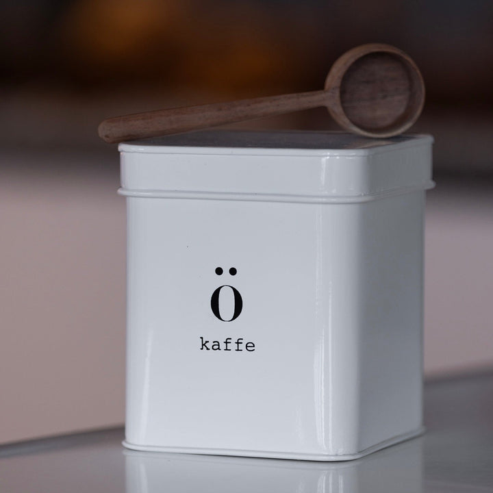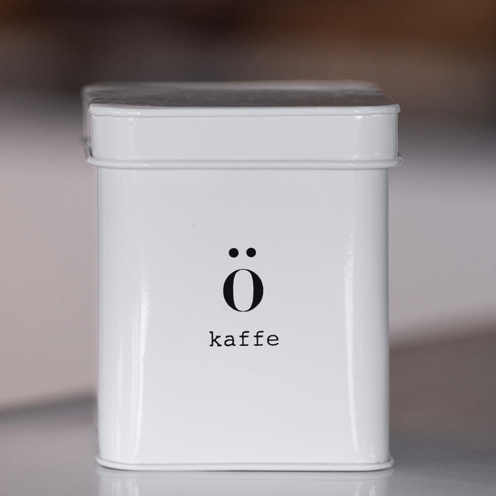 Stilren oppbevarings boks til kaffe i hvitmalt emalje. Denne boksen er en del av en serie oppbevaring, som er så dekorativ at den gjerne kan stå framme og skape den gode stemningen vi ønsker oss. Håndvaskes og tørkes med koppehåndkle.