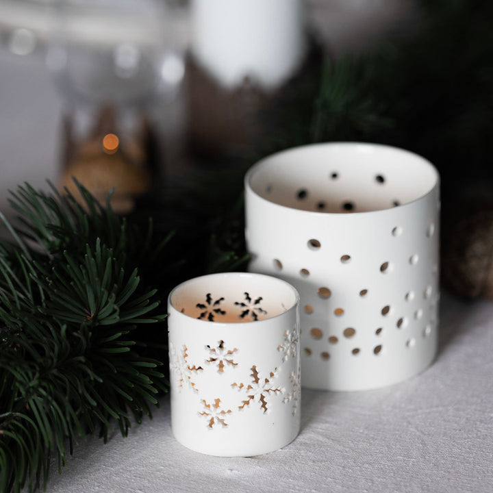 Beautiful t-lightholder in porcelain, comes in different sizes with different hole pattern and texts.