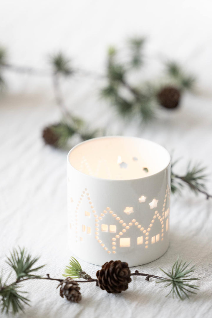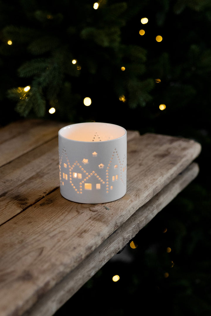 Beautiful t-lightholder in porcelain, comes in different sizes with different illustrations and texts.