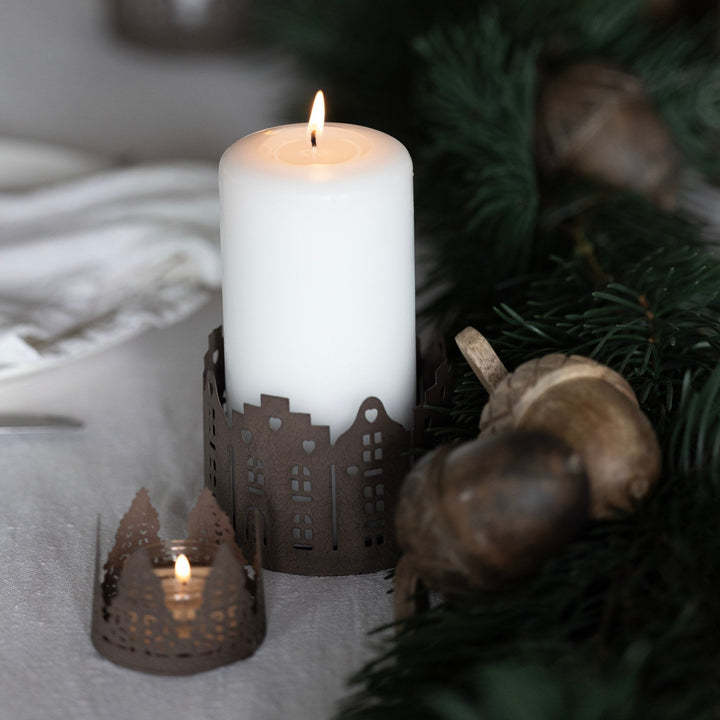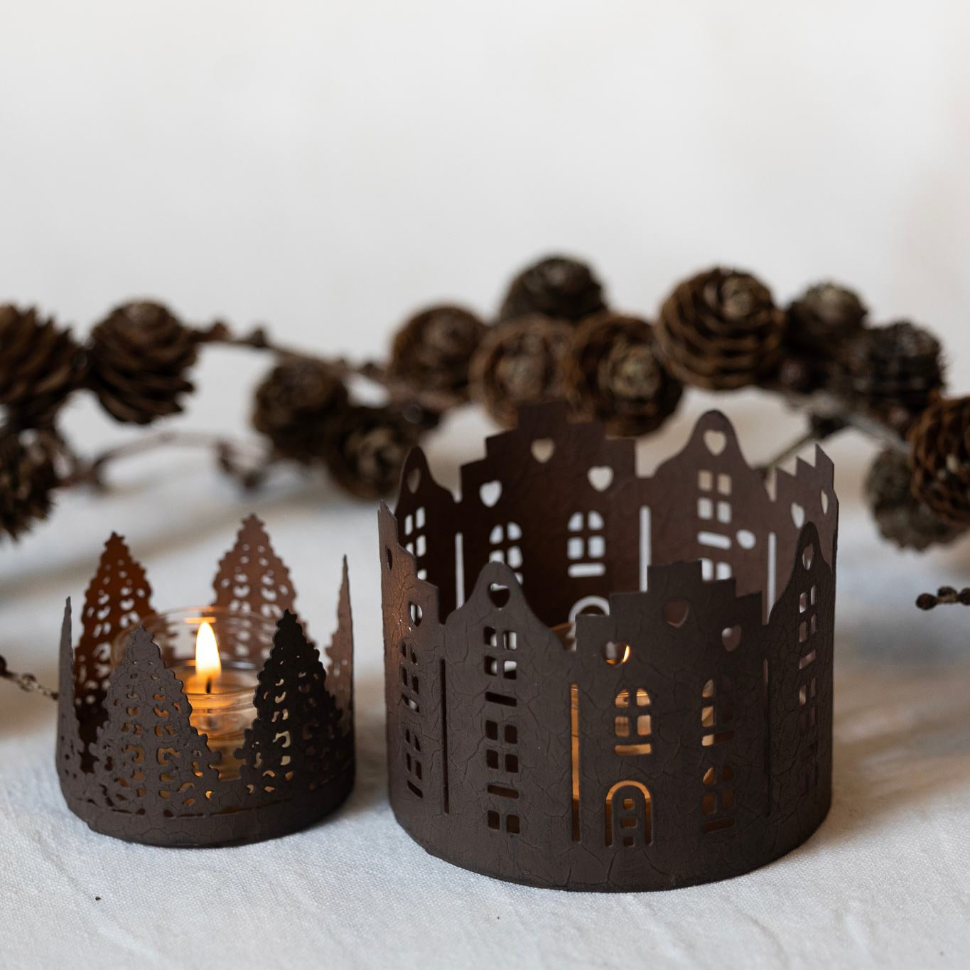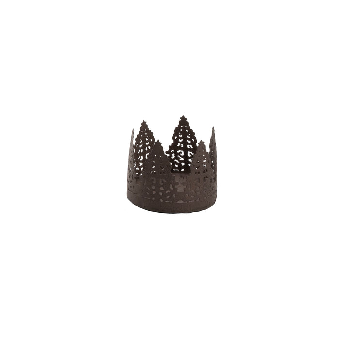 Candle holder in brown metal for tealights with motif of trees. Dimensions Ø6 H4.5 cmArticle number 10187