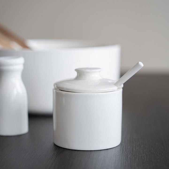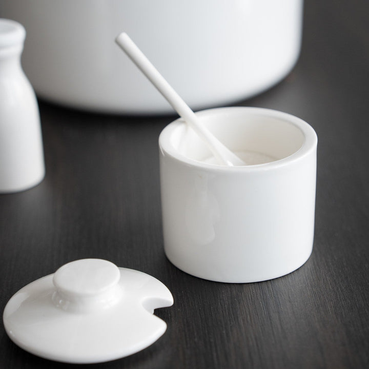 New for this fall is this lovely sugar bowl w/lid and spoon in porcelain.