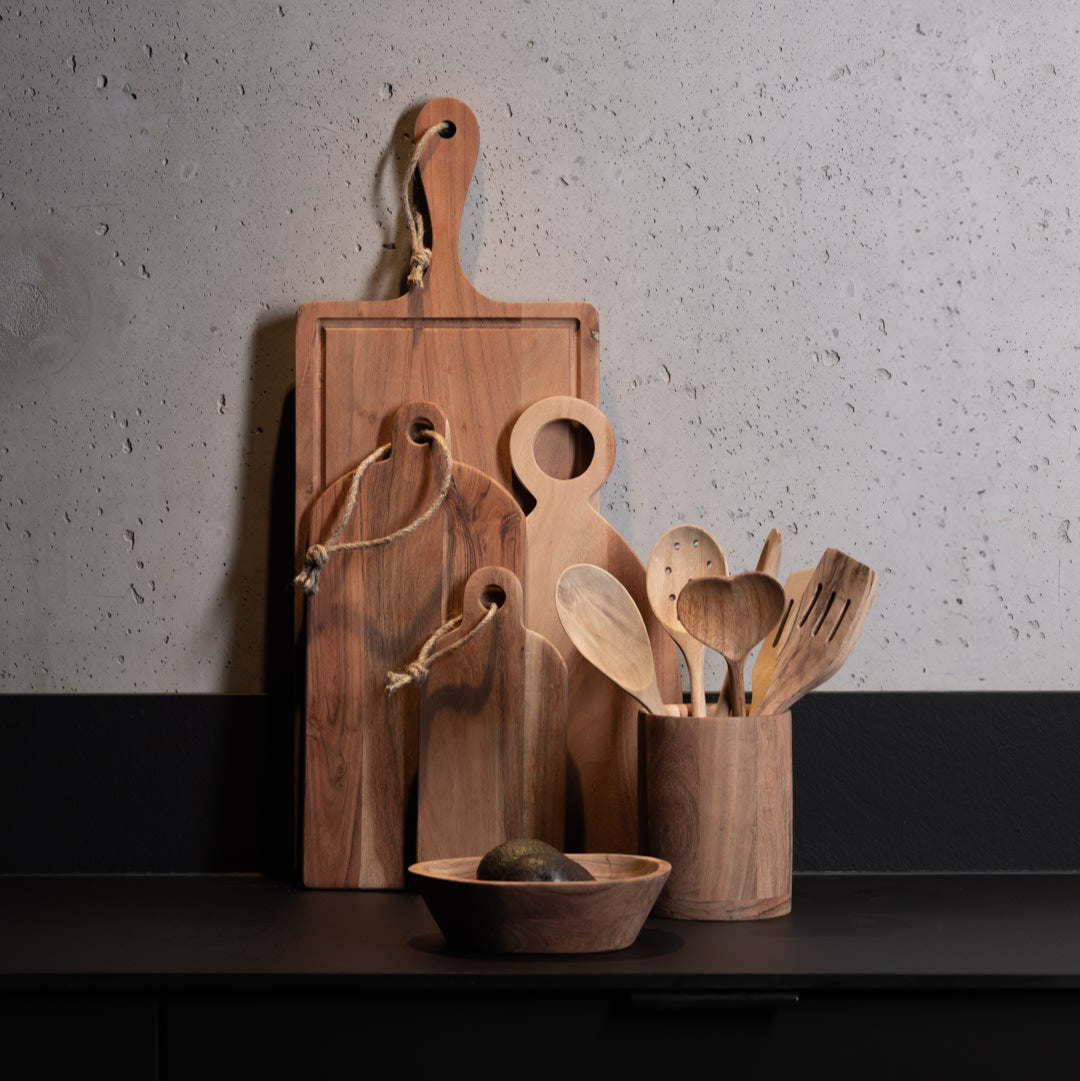 Tåler ikke oppvaskmaskin. Settes inn med matolje om treverket blir tørt.