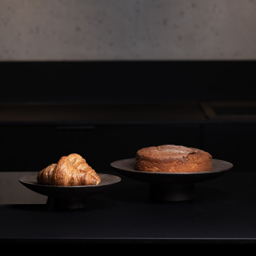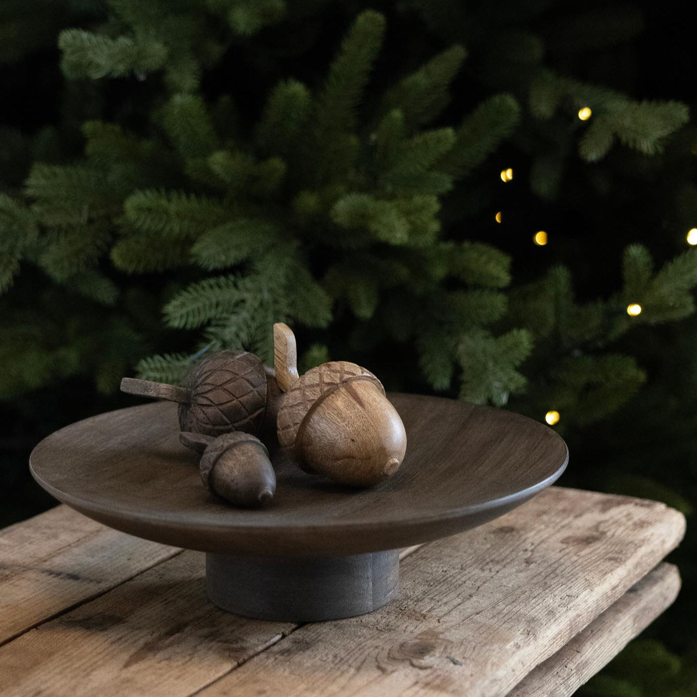 Stilrent rundt fat på stett i brunt mangotre. Kan brukses som dekor eller til servering. Etter bruk skylles fatet først i kaldt vann før det vaskes i varmt rennende vann. Fatet kan settes inn med en nøytral matolje for å hindre at fukt trekker inn. Fatet kommer i to størrelser.