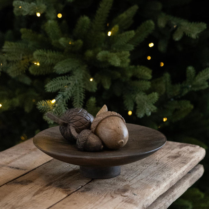 Stilrent rundt fat på stett i brunt mangotre. Kan brukses som dekor eller til servering. Etter bruk skylles fatet først i kaldt vann før det vaskes i varmt rennende vann. Fatet kan settes inn med en nøytral matolje for å hindre at fukt trekker inn. Fatet kommer i to størrelser.