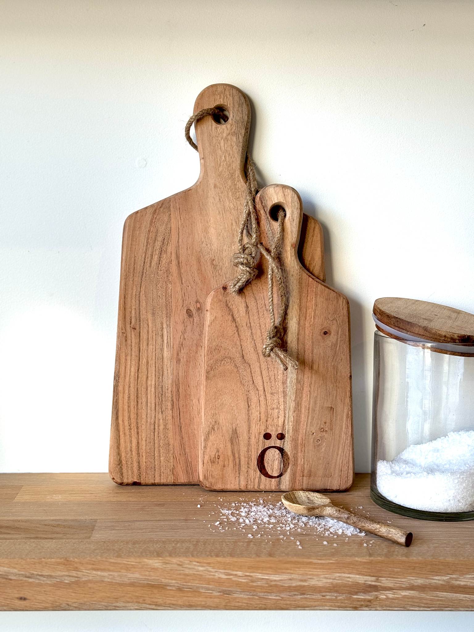 Praktisk trefjøl i akasietre som også er fin å bruke til servering. Når den ikke er i bruk, er den dekorativ på benken.
